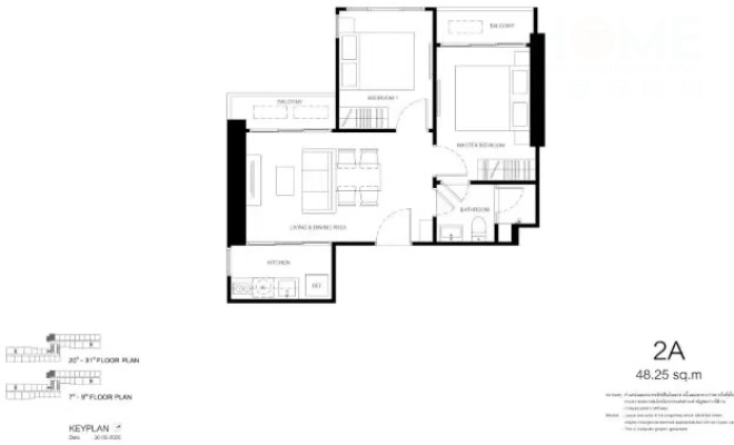 2卧室,面积48.25平方米,起价480万泰铢