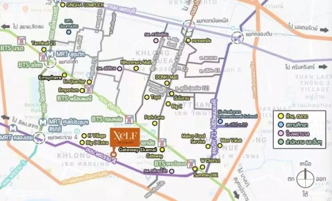 XELF by Sansiri位于拉玛四世路 (Rama IV Road),这条主干道汇聚了购物中心、酒店、医院、办公楼、公园和知名教育机构,包括One Bang、Silom Edge、Med Park、Dusit Central Park、FYI Center、Maleeont Building、T-One和诗丽吉王后国家会议中心。