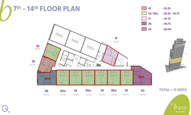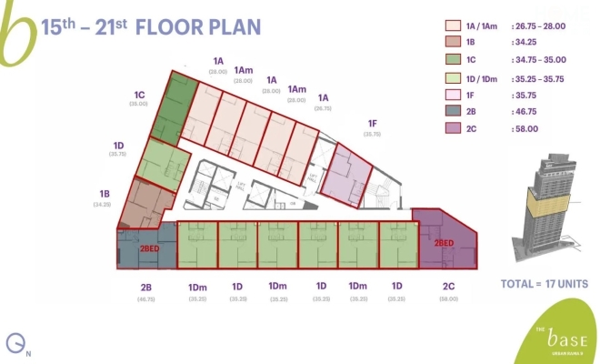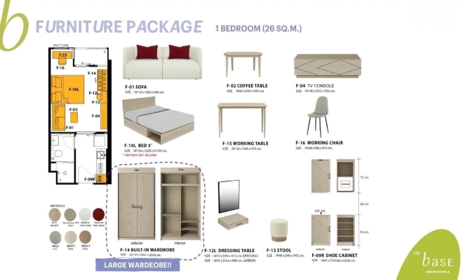 1卧室,面积29-35平方米,起价359万泰铢