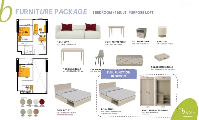 1卧室(阁楼),地契面积23.75–28.75平方米,总使用面积32.75–41.00 平方米,起价329万泰铢