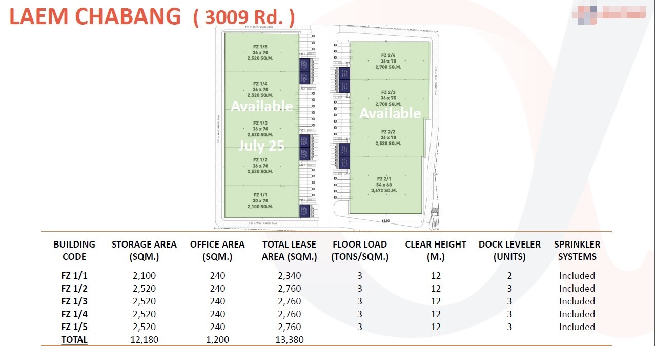 春武里府 |【保税区】Laem Chabang 多面积工厂仓库出租 UO-2025-03-13