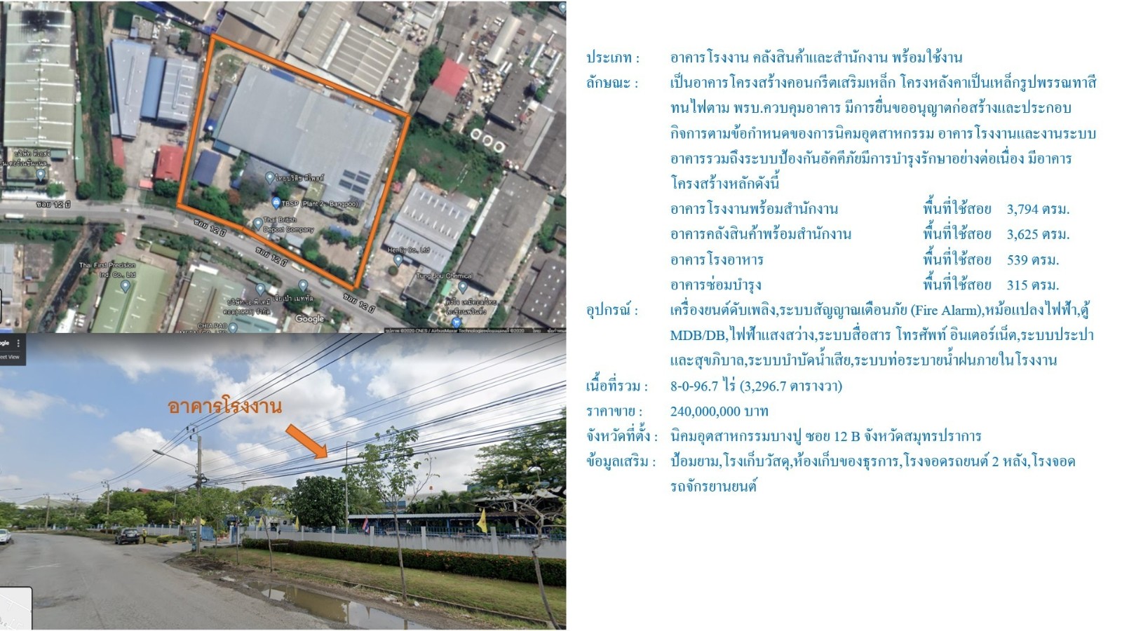 【紫色区】Nikhom Bangpu Samutprakan 仓库工厂出租/售 13,184平米 出租100万泰铢/月,出售2.5亿泰铢