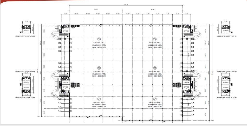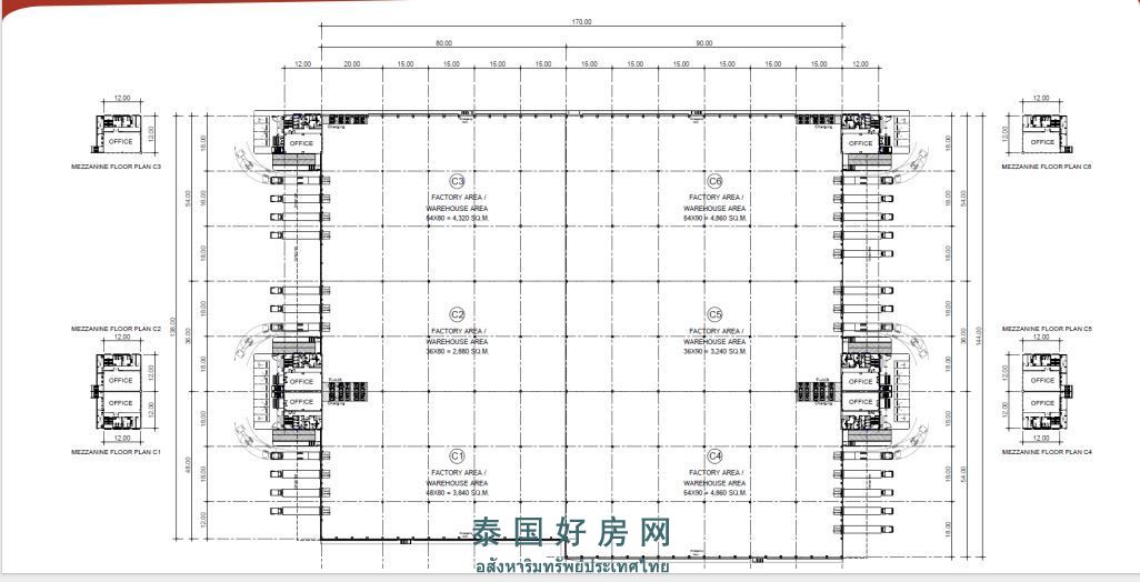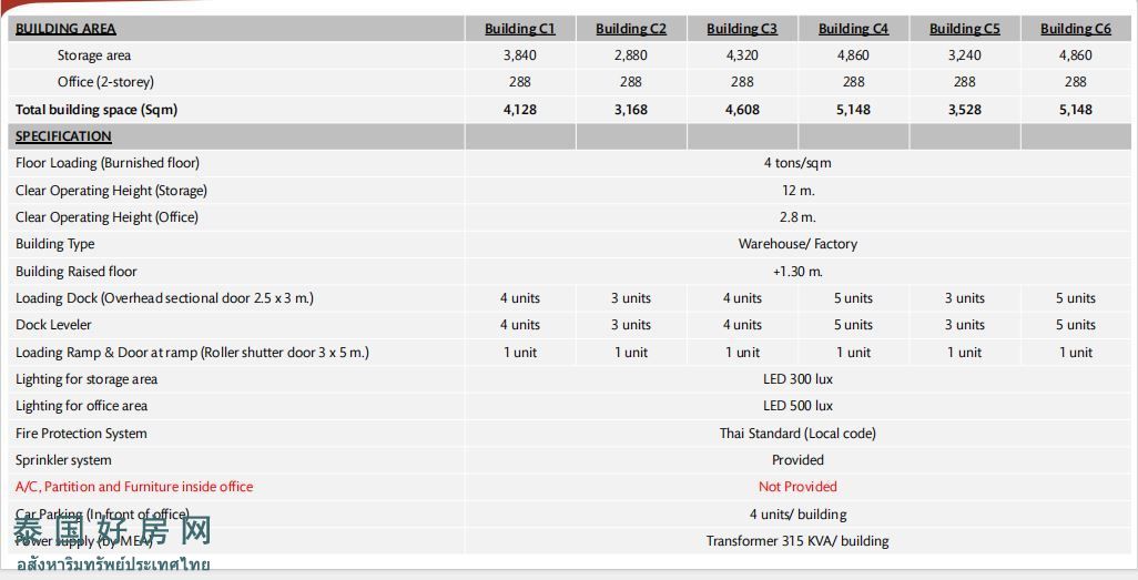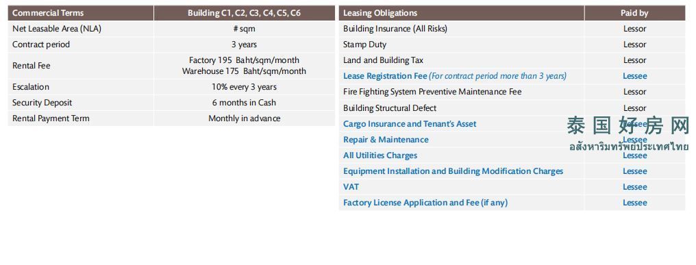 工厂租金:195 泰铢/平方米/月