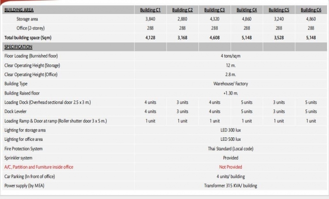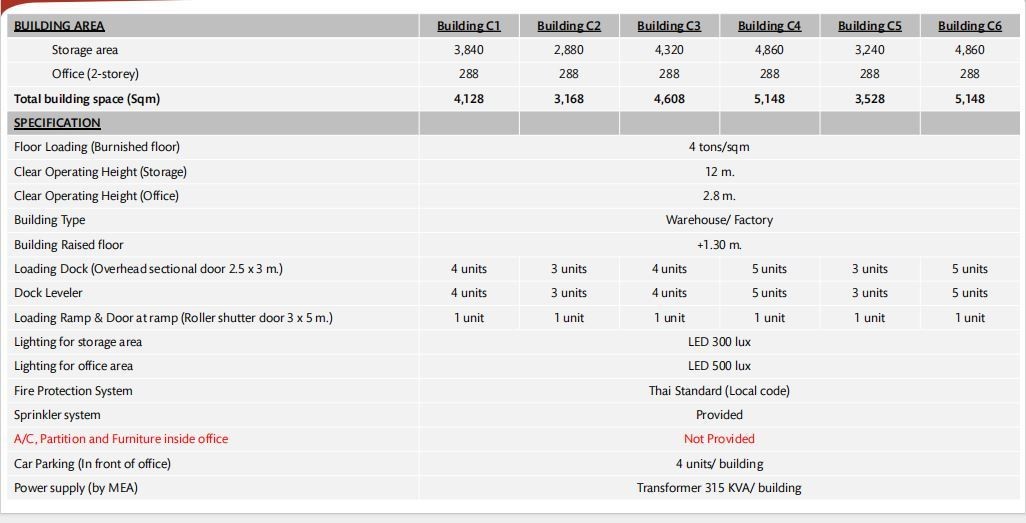 仓库租金:175 泰铢/平方米/月